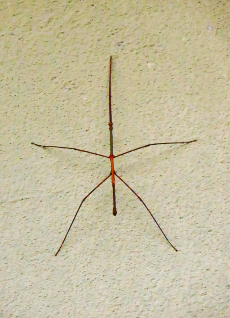 This walking stick was well over a foot long, and photographed three stories up the side of a building.