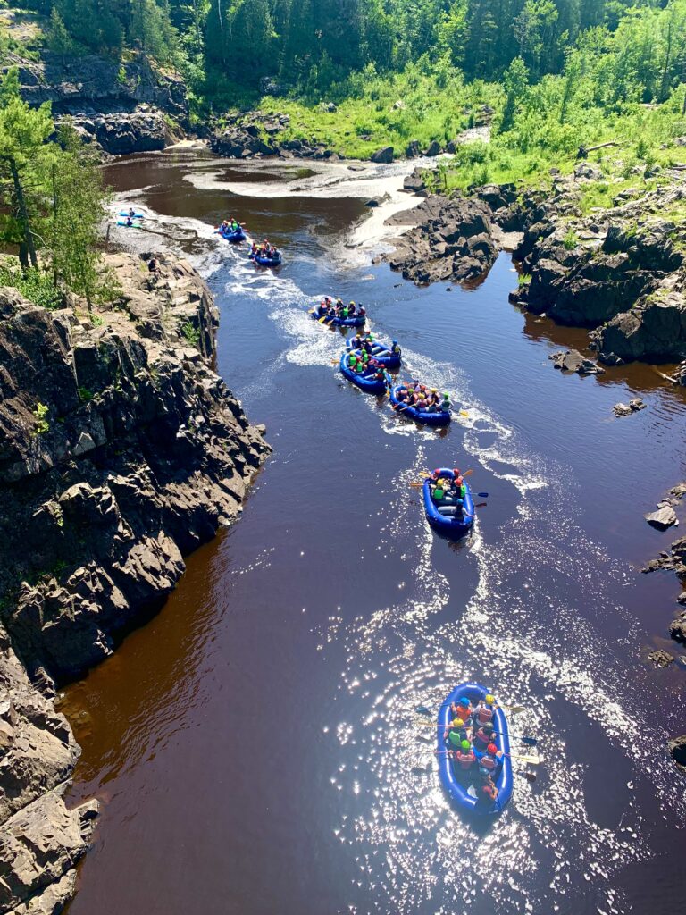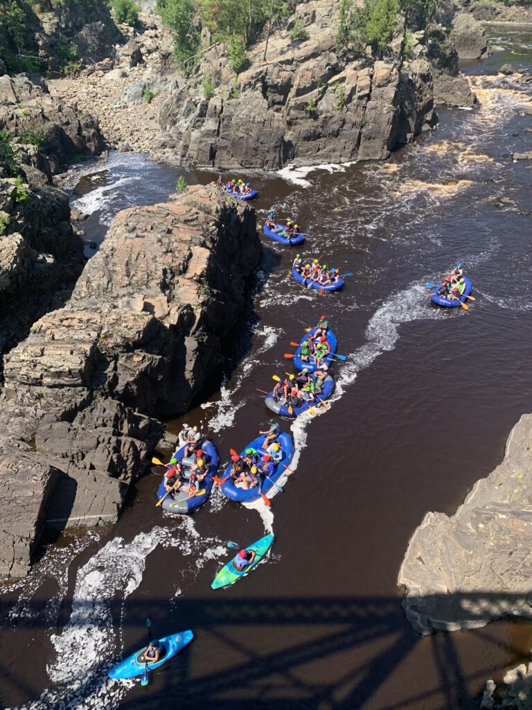 Here’s a group of intrepid rafters dueling the river at Jay Cooke State Park.